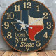 Texas Lone Star State map rustic cowboy state wall art, country home accessory, Texas pride clock, farmhouse Texas decor, USA regional wall clock