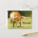 A Texas Longhorn seeming to welcome you to the lone star state and saying "Hi, Ya'll". As a bonus, some facts about this cattle breed is provided on the back of the card for added interest and education. Keep this card for yourself as a souvenir, or share with friends and family.