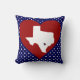 Cute Texas Love Pillow! Navy Blue Pillow scattered with tiny white polka dots, a large crimson red heart, with a white Texas Map in the middle. Tiny heart (made with the Texas Flag) showing the capital of Texas OR Select CUSTOMIZE to move the heart around to represent any city in Texas that you'd like! Back of pillow is solid navy blue. #Texas #Pride #Love