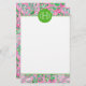 Texas Map Pink & Green Preppy Pattern Monogrammed Stationery
