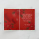 A graphic design of red poinsettias on a Christmas Greeting Card. The card has the text Seasons Greetings from Texas. It has a customisable verse inside. Original artwork: Copyright Charmaine Paulson