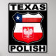 Texas Polish design, in the style of a cool American road route sign. The text Texas Polish is along the top and bottom, with the flag of the State of Texas and the flag of Poland inside the route sign. Great for Texans of Polish descent, and for ex-pats in the Lone Star State.