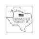 Design a personalised rustic rubber stamp for your family's return address in Texas. This unique stamp showcases the State of Texas and charming typography, allowing you to add your own family name (or business name) and address.