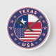 Badge of Texas with flag of Texas and flag of USA colours, rounded shape.