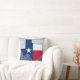 Texas state flag in the shape of Texas with a background of bluebonnets and blue sky print on throw pillow. Print on the back side is a smaller repeat pattern