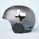 This vinyl cutout sticker, in the shape of the State of Texas, is filled with the silhouette of an oil drilling rig.