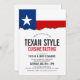 A Texas flag-themed invitation card for your next big Texas themed event. A great item to use for a Texas food cuisine event, or barbecue.