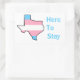 The Texas Legislature is at it again - trying to restrict trans rights and hurt us any way they can. Show your commitment with this “Here to Stay” sentiment, with Texas in trans Pride colours.