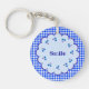 Text Custom Cherry×Check (Blue) Key Holder Ring