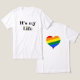 T-shirt with text and heart with colours LGBT colours behind
