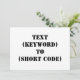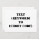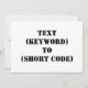 "TEXT (KEYWORD) TO (SHORT CODE)" Change KEYWORD and SHORT CODE to your own text messaging keyword and short code. Add any other slogan or text.