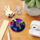 Map of the world where each country is represented by its name rather than physical land shape. Electric colours on dark blue/black background.