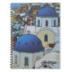 Beautifully designed textile art scene from Santorini, Greece adorns the cover of this notebook.