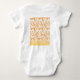 Textile pattern featuring a vibrant orange and gol baby bodysuit