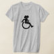 A woman sits in a wheelchair with a cat on her lap, her hair blowing behind her as she races through life. On the reverse is the url for the blog Textual Fury. This logo does not appear on a black shirt!