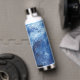 The bottle looks even better in real life. The ice cubes I put in lasts all day! I have my bottle with me all the time. It's summer and having something cold to drink feels amazing. With this bottle I always have something super cold. I have only tried the hot drink once and it lasted a long time as well. The color blue is a navy blue and the white printed on it is vibrant. It printed perfectly. I love my personalized smile water bottle.