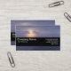A business card template with an attractive photo background (which can also be changed). Details on a black band. Company details and address on the front with name and other contact details on the back. Ready to be customised with your details.