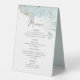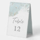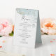 wedding table tent with menue and table number in textured faux blue gold foil and the elegant script font in a combination with sans serif. Beautiful luxurious details card for year round wedding. Come and see the whole collections in our store for a complete wedding experience.
