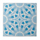 Textured Blue White Stylised Symmetrical Floral Ceramic Tile