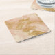 = Scalloped Square Paper Coaster = This cool scalloped square paper coaster has a rough distressed look with rose blush and golden glitter with gold ink splatter design elements.