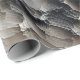 Swirling patterns interweave, creating a background of cracks and folds in cream, grey, and brown shades.