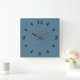 Textured herringbone blue. square wall clock