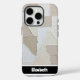 This premium mobile device protector showcases a sophisticated, heavily textured impasto oil painting. Raised geometric triangles and blocks in elegant neutral tones of white, cream, and beige form a striking 3D radial pattern. The distinct, thick brushstrokes highlight its modern abstract art style. Personalise this unique smartphone accessory with a name like "Elizabeth"; you can easily remove the name and any other elements you don't like from within the design tool, crafting your perfect bespoke mobile phone protector.