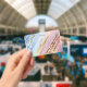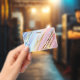 Pink and blue textured background, painted with large brush strokes, decorated with gold foil. Grunge Texture.