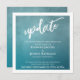 This design features a modern, handwritten script font used to create a graphic depicting the word "update", large and bold. A subtle watercolor overlay was placed at the top, adding texture. Beneath this graphic I've added another image: a teal ombre gradient with rich hues. You can rotate this image for different effects, if you so wish. For an added bold effect, I've placed a thick white border around the edges of the front of the card. Use the template fields to add your personal details and make this unique, modern design your own. Please reach out with any special requests or for customising assistance. // 100 //
