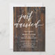 Textured Wood Handwriting Just Married Typography Invitation