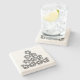 The coasters are gorgeous, a quality feel and heavy weight. They look like a precious archeological find. A rustic stone juxtaposed with a modern floral black and white print. I like the way the print goes slightly imperfect on the cut stone edges giving them a kind-of natural beauty.