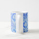wall of the church is decorated with ceramic tiles with blue Thai pattern.