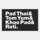 Thai Dishes: Pad Thai & Tom Yum & Khao Pad & Roti.