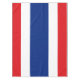 The flag of the Kingdom of Thailand shows five horizontal stripes in the colours red, white, blue, white and red, with the central blue stripe being twice as wide as each of the other four.