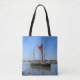 Bag showing a photo of a stunning Thames Barge. These boats were once used commercially on the River Thames in London. The boats is black with red sails pictured sailing under a blue summer sky.