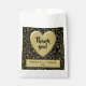 The over-the-hill, numerical design on the front has a black and gold random number pattern with the gold number 40 repeated in varied sizes and angles. There is a gold puffy heart shape in the centre, front with "Thank you.” The lower front has room for, "Thank you for coming to my birthday party. A fun idea for party favours for your 40th birthday party, and for all occasions or celebrations where you are featuring the number forty; just change the text to match the event.