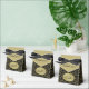 Easily personalise the text on this gold and black 45th birthday party theme with the templates supplied. This design in the background is a gold and black pattern of the number 45 repeated in varied sizes and angles in an all-over, typography print. There is a gold flap on the top and an oval plaque in the centre front for your text. Use the easy templates to add your own words, name, initial, or monogram. A great idea for party favours for your 45th birthday party or any event where you are celebrating the number 45; just change the text.
