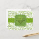 This design is a green and white random number pattern with the green milestone number 50 repeated in varied sizes and angles over a white background. There is a ticket shape in the centre for your text.