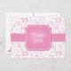 This design is a pink and white random number pattern with the pink milestone number 75 repeated in varied sizes and angles over a white background. There is a ticket shape in the center for your text.