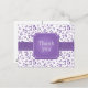 This design is a purple and white random number pattern with the purple milestone number 75 repeated in varied sizes and angles over a white background. There is a ticket shape in the center for your text.