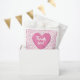 The over-the-hill, numerical design on the front has a pink and white random number pattern with the pink milestone number 80 repeated in varied sizes and angles. There is a pink puffy heart shape in the centre, front with "Thank you.” The lower front has room for, "Thank you for coming to my birthday party. A fun idea for party favours for your 80th birthday party, and for all occasions or celebrations where you are featuring the number eighty; just change the text to match the event.