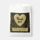 The over-the-hill, numerical design on the front has a black and gold random number pattern with the gold number 90 repeated in varied sizes and angles. There is a gold puffy heart shape in the centre, front with "Thank you.” The lower front has room for, "Thank you for coming to my birthday party. A fun idea for party favours for your 90th birthday party, and for all occasions or celebrations where you are featuring the number ninety; just change the text to match the event.