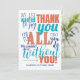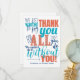 Say thanks in style. This fabulous typography design features a blue, turquoise and rust coloured thank you message. A wonderful flat card to show your appreciation. Would be perfect for employee staff appreciation or business customers.