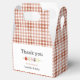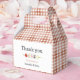 Add a fun and thoughtful touch to your favours with these Baby-Q BBQ Couple Baby Shower Favour boxes. Featuring a muted peach and terracotta gingham background, a juicy skewer illustration, and bold modern typography, these boxes are perfect for thanking guests at your baby shower barbecue.