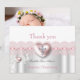 Thank you Elegant Pretty Girl Baptism Pink Silver White Lace Photo Jewel Heart Cross, Christening Baptism Invitation. Customise with your own details and Photo. Birth Announcement