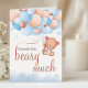 A sweet baby shower thank you card featuring an adorable teddy bear floating beneath soft blue and blush balloons with dreamy cloud and star accents. The playful “Thank You Beary Much” wording adds a warm and memorable touch, while the watercolor design feels charming, elegant, and perfect for a baby boy celebration. A lovely choice for sending heartfelt thanks after a teddy bear baby shower, pastel baby shower, or bear-themed event.