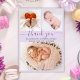 Baby Birth Lavender Lilac Announcement Thank You Photo Collage Cards. Elegant minimalist cute birth announcement featuring 3 of your favourite baby photos on front, with a pretty hand lettered text „thank you” in a swirly calligraphy script with swash tails on lavender or lilac colour background. Add your baby's name on the front and birth stats. On the back side there's space for your thank you message and one baby photo. You can easily personalise it.