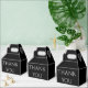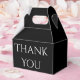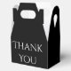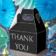 Add some fun to your next event with a thank you favour box. This sweet and simple box features a thank you greeting in a fancy white font highlighted against a jet back background. The back of the box features a coordinating white thank you greeting.