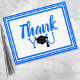 Send these Thank You Blue and White School Colours Postcard to your grad's party guests. Write a personal note on the back. It features 'Thank You' written in blue with a grad cap.