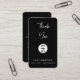 A modern minimalist personalised thank you script calligraphy business card with business logo and QR code. Personalise with your logo, QR code and details to create your own unique elegant black business business card. A simple and professional way to promote your business. A perfect QR code business card for anyone. Personalise your details to create your own unique business card.